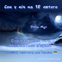 Сни, побачені у ніч з 17 на 18 лютого, вважаються віщими. Гарний сон означає те, що все сприятливо, а тривожний сон каже, що час щось міняти. Якщо сниться майбутнє, значить, у Вас надто завищені плани.